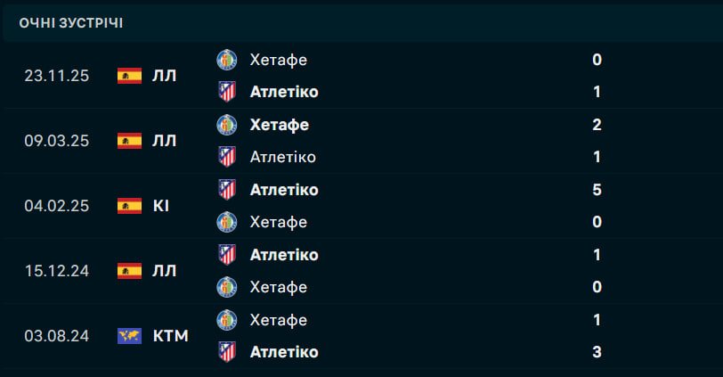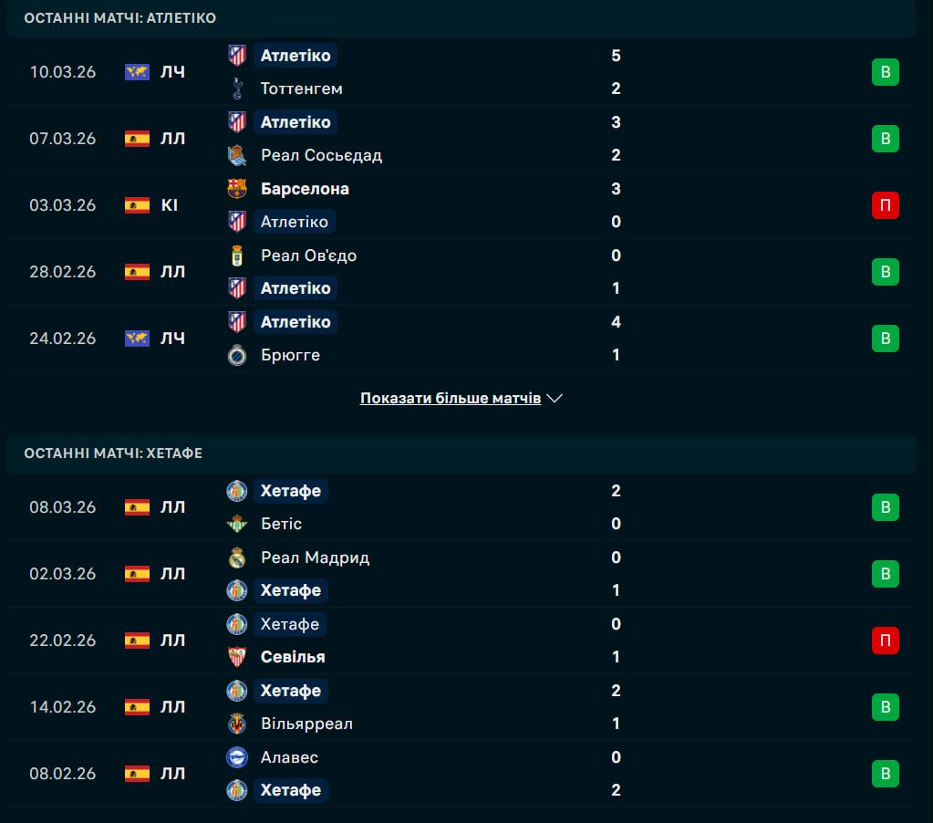 Хетафе приїжджає на Метрополітано, вигравши чотири з останніх п'яти матчів чемпіонату, зокрема здолавши мадридський Реал та Реал Бетіс. Команда Хосе Бордаласа демонструє вражаючий прогрес з середини січня, що дозволило їй піднятися на дев'яту сходинку. Наразі "сині" відстають від єврокубкової зони лише на п'ять очок. Втім, статистика виїздів до Атлетіко для Хетафе є гнітючою: остання перемога на полі "матрацників" була здобута ще у 2010 році. У першому колі поточного сезону-2025/26 підопічні Сімеоне святкували мінімальну перемогу 1:0, тож гості прагнутимуть реваншу.