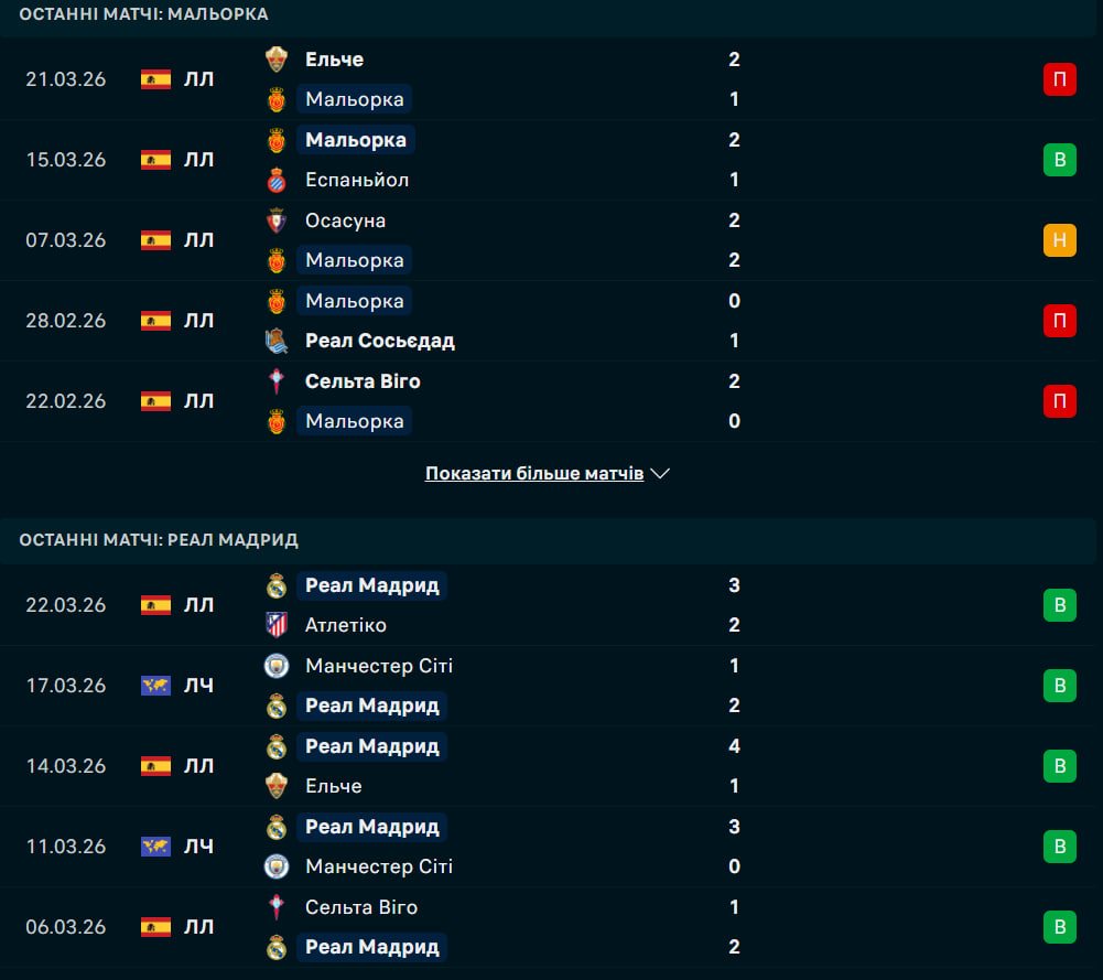 Реал Мадрид повертається до внутрішніх справ після міжнародної паузи, вирушаючи на Балеарські острови. Підопічні Альваро Арбелоа перебувають у погоні за Барселоною, тоді як Мальорка відчайдушно бореться за виживання, перебуваючи в зоні вильоту.