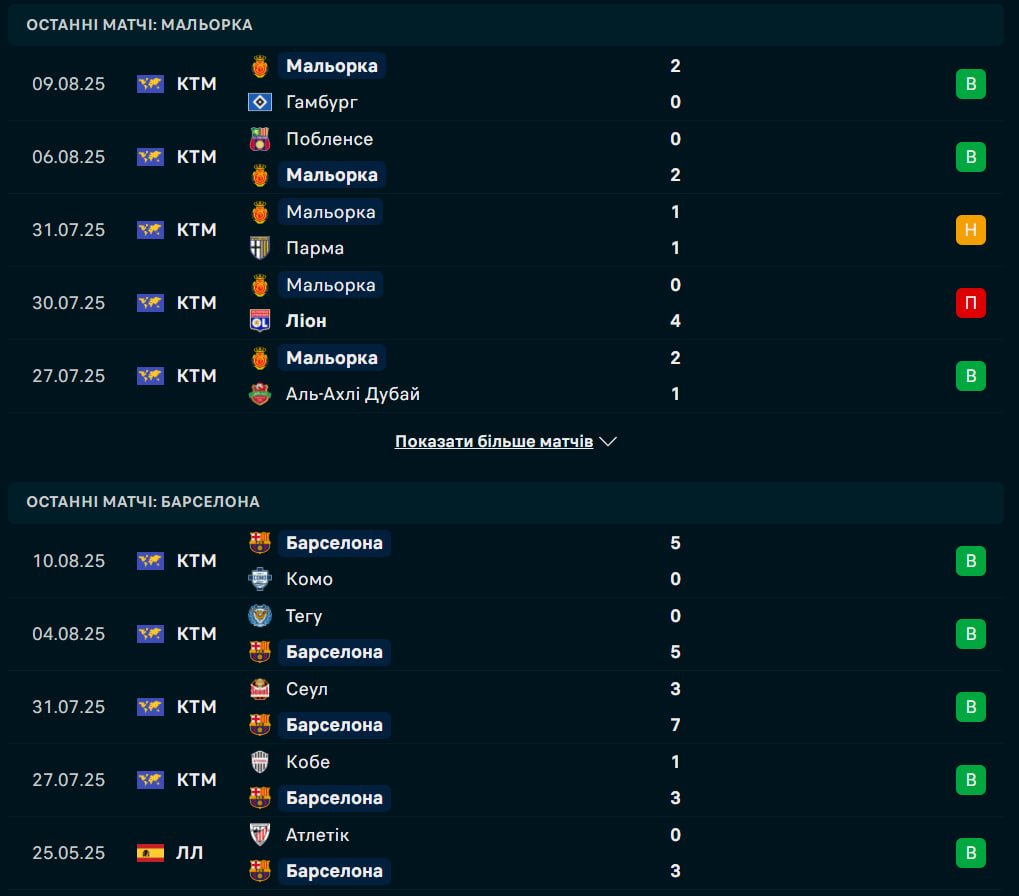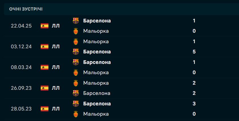 Однак у протистояннях із Барселоною Мальорка має серйозні труднощі: “пірати” програли 14 із останніх 15 матчів у Ла Лізі проти каталонців, а їхня остання перемога в цій парі датована 2009 роком. Минулого сезону Барселона розгромила Мальорку з рахунком 5:1.
