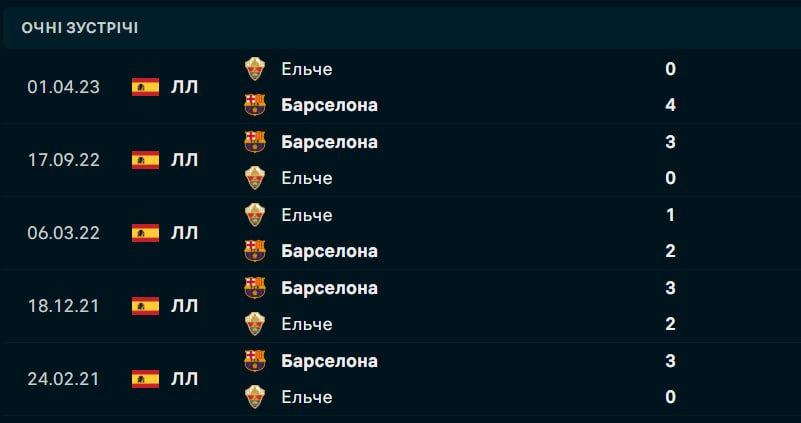 Барселона виграла 34 з 55 попередніх матчів проти Ельче, зазнавши лише дев'ять поразок, і ніколи не програвала супернику на власному полі. Каталонці також мають серію з 10 перемог поспіль проти Ельче, включаючи перемоги 3:0 та 4:0, коли дві команди востаннє зустрічалися в сезоні-2022/23.