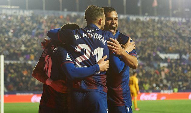 Леванте: Фернандес - Мирамон, Постиго, Бруно, Тоньо - Моралес, Кампанья, Вукчевич, Барди - Марти, Майораль