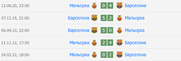 Результаты последних очных встреч Ла Лиги