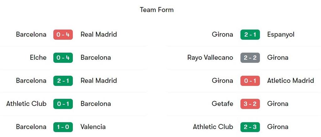 Жодного разу "синьо-гранатові" не поступалися "червоно-білим" у першості, лише одного разу зіграли внічию. Це сталося ще в перший захід Жирони у Ла Лігу, коли Крістіан Стуані оформив дубль, а Барселона в меншості після першого тайму зуміла вирвати нічию завдяки м'ячу Піке.