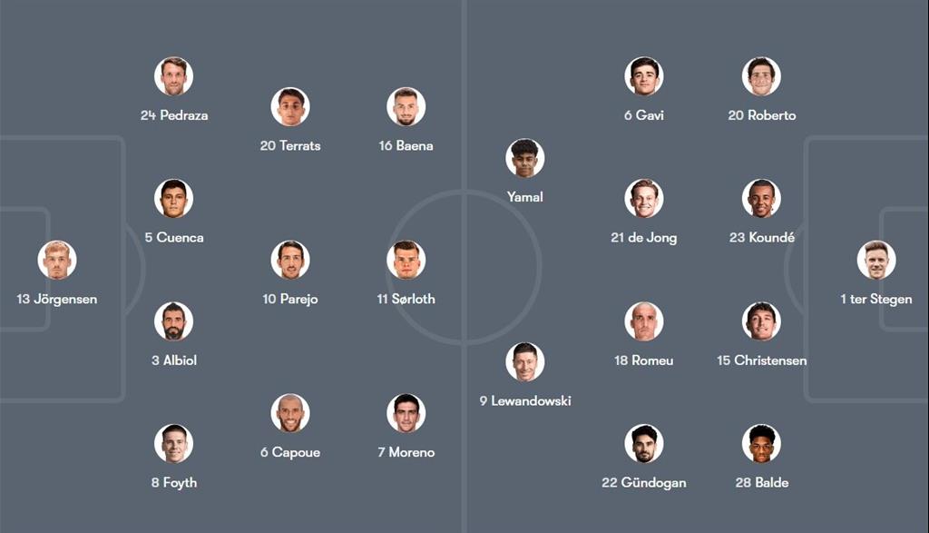 Головне питання в діючого чемпіона країни полягає в заміні для Рафіньї на правому фланзі нападу. Можливо, тренерський штаб довіриться молодому таланту з академії Ламіну Ямалю, проте не виключений інший варіант. Загалом в центрі поля є кому грати за тимчасової відсутності одного з лідерів Педрі, в обороні схожа ситуація.