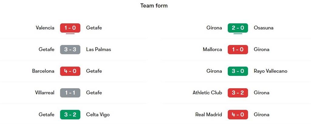 На даний момент статистика зустрічей майже аналогічна в цих клубів. Більше перемог здобула Жирона (5). У Хетафе є 4 матчі, які вдалося виграти на даний момент. В тому числі у матчі минулого року колектив Мічела виграв завдяки двом голам Крістіана Стуані та м'ячу Янгеля Еррери. Різниця голів складає 18:23 на користь нинішнього кандидата на чемпіонський титул.