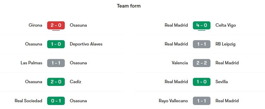 Різниця голів 207:84 на користь команди з Мадриду. До цього минула перемога з Реалом в Осасуни відбулася у 2011 році.