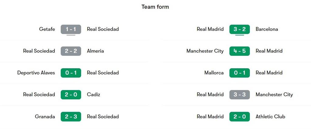 Мадридський Реал має значно кращий показник прямих протистоянь із колективом з Сан-Себастьяна – клуб зі столиці Іспанії виграв 24 із 37 матчів.