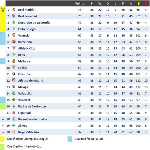 9 лет назад Реал Сосьедад создал сенсационную интригу в испанском первенстве, до последнего тура ведя борьбу за чемпионство с легендарными Галактикос. В итоге, отстав от Мадрида всего лишь на два очка, баски завоевали серебро.