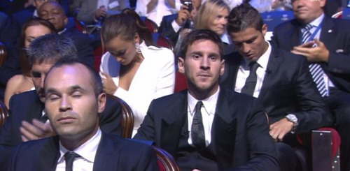 Он не праздновал голы в ворота Гранады, потому что его окончательно выбила из себя жеребьевка Лиги чемпионов, на которой попутно вручалась очередная индивидуальная цацка – приз УЕФА лучшему футболисту года в Европе. Криштиану вышел на сцену легкой походкой, но с тяжелым сердцем, о чем могли бы написать красноречивые трактаты малочисленные специалисты по физиогномике. Лицо CR7 кривилось, словно он заранее был обречен на поражение. Он чувствовал себя не в своей тарелке. Все было мимо кассы. Двое коротышек из Барселоны, слабо знакомые со звездным миром тусовок и впечатляющих вечеринок, не привыкшие к ослепляющему сиянию софитов, с трудом отвечали на вопросы вежливых ведущих. Иньеста, который в итоге с испуганным лицом и получил приз, невнятно мямлил, и отбиваться опять пришлось Криштиану. Вызвать, так сказать, огонь на себя. Он единственный, кто бодро разговаривал с ведущими: Иньеста истекал потом, Месси изучал потолок. Ирина Шайхлисламова, самая красивая женщина в 81-летней истории тридцатитысячного Еманжелинска (Россия, Челябинская область), что-то терла с подругой – тоже моделью, только не такой известной, - с таким видом, будто бы она никакого отношения к Криштиану не имеет, и вообще, забежала на церемонию постольку поскольку. Португалец только-только выиграл с Мадридом Суперкопу – между прочим, именно у этих двух парней, стоявших на сцене рядом с ним, - но никто не собирался дать ему насладиться триумфом. Через пару дней после победы его публично унизили.