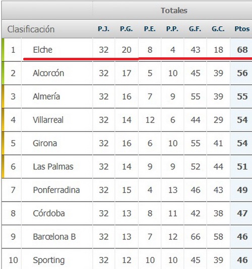 Но теперь уже вряд кто-то сомневается, что аликантийцы на следующий сезон будут выступать в Примере. Эльче не обладает звездными игроками, но состав коллектива подобран чрезвычайно добротно. Можно выделить 31-летнего голкипера Ману Эрреру, лидирующего сейчас в гонке за Трофео Самора второго испанского дивизиона – воспитанник Мадрида пришел в команду в качестве свободного агента и моментально стал важнейшим элементом успеха аликантийцев. В обороне многое зависит от воспитанника Бильбао, центрального защитника Хабьера Этчейты, а также правого латераля, уругвайца Дамиана Суареса. Впереди воротам соперника угрожают двое кантаренос Эспаньола – правый вингер Хорди Чуметра и универсальный аттакер Коро, являющийся одновременно и лучшим бомбардиром команды (11 голов), и лучшим ее распасовщиком (9 ассистов). Наконец много авансов выдается пришедшему зимой нападающему Анхелю Родригесу, который, наряду с Чуметрой, обладает статусом самого дорогого из всех футболистов клуба (стоимость обоих – по 1,5 млн евро), и за плечами которого пребывание в академиях Тенерифе, Мадрида и Осасуны.