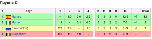Группа C. Зенит – Малага 2:2 (Буонанотте, 8, Себа Фернандес, 9)