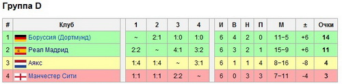 Группа D. Манчестер Сити – Реал Мадрид 1:1 (Бензема, 10)