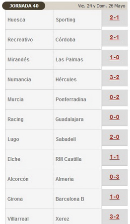 1 – Мирандес, Расинг, Рекреативо, Мурсия, Херес, Уэска, Понферрадина, Луго