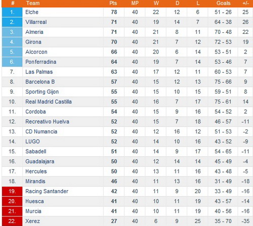 В отчетном туре Сегунды произошло три важных события. Во-первых, Эльче, оформивший на прошлой неделе повышение в классе, в минувший уик-энд официально выиграл первенство дивизиона. Аликантийцы победили во втором испанском дивизионе впервые с сезона 1958/59 (тогда Сегунда была разделена на две подгруппы, в первой из которой первенствовал Вальядолид, а во второй – Эльче), и сразу же после этого команда из Валенсийского сообщества провела самый успешный период в своей истории, выступая в Примере 12 лет подряд.