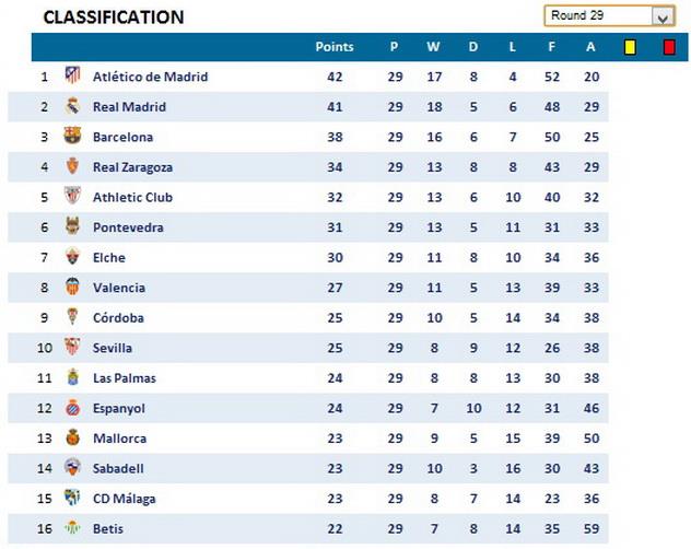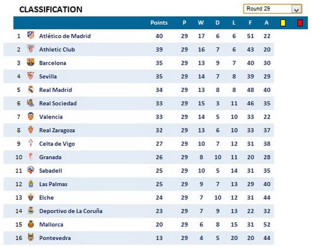 Барселона Ринуса Михелса лидировала большую часть первенства, но ее сил явно не хватало на вторую фазу чемпионата. Таким образом, к последнему туру лидером являлся уже Атлети Максимилиана Меркеля, опережавший каталонцев на одно очко и имевший преимущество в личных встречах.
