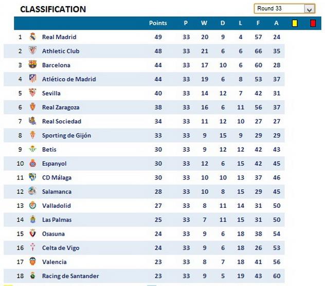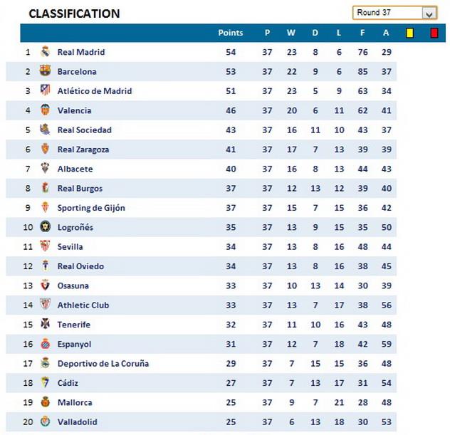 За тур до финиша Галактикос опережали басков на два очка, что не было критичной дистанцией, учитывая обстоятельство перехода Примеры на трехбалльную викториальную систему подсчета очков.