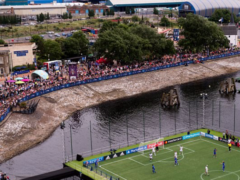 Люди настолько хотят играть в футбол, что часто создаются все новые и новые футбольные площадки. Нередко, место для таких площадок найти очень тяжело, а потому их возводят в невероятных, казалось бы, местах.