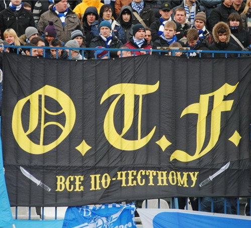 - Самые жестокие и обезбашенные футбольные хулиганы – это O.T.F (Около Трибунная Фирма). C ними не приходилось драться, потому что они болеют за Динамо. Их людей знают в лицо, наверное, все «мясные». Был случай, когда «юны» спалили четверых ОТиФишников в баре на «Спортивной». Приехала двадцатка Union, но один из бойцов O.T.F. вытащил нож и шестерых «юнов» отправил в больничку. Они до сих пор используют, можно сказать, новое, «говно» — травматы, они ходят с ножами. У них есть баннер – O.T.F., нарисованы два кинжала, подпись «Все по-честному». Их небольшое количество – бойцов двадцать-тридцать. А так – все жестокие.