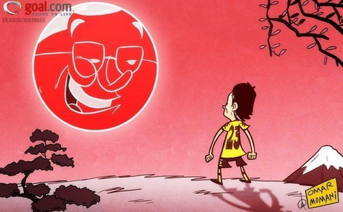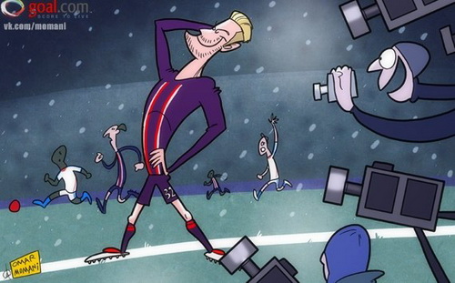 - По-разному. Например, я любил рисовать Рууда Гуллита, потому что у него запоминающаяся прическа и он все время корчит смешные рожи. Во время ЧМ-2010 я рисовал карикатуры на футболистов, которые показывал своим друзьям, и тогда же решил, что спецификой моей работы станут именно футбольные карикатуры. На меня вышел портал Goal.com, который начал размещать мои рисунки в сети. С тех пор я с ними и сотрудничаю.