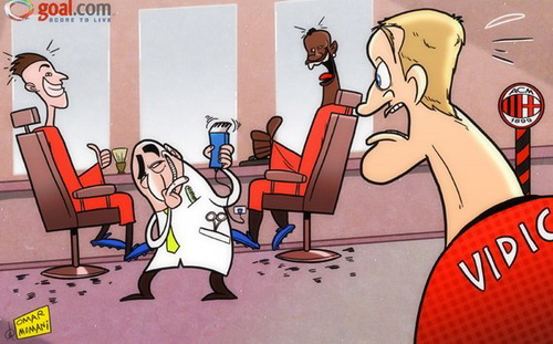 Почему у всех футболистов Милана такие дурацкие прически? Видич, возможно, и хотел бы переехать на Сан-Сиро, но его пугает перспектива посещения местной парикмахерской.