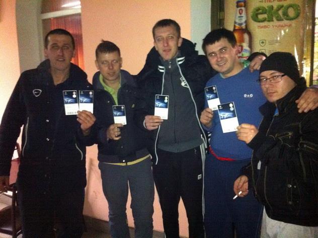 Собирались мы на такой большой праздник долго и тщательно. Все случилось благодаря усилиям нашего президента, который только по ему известной схеме вышел на внутренних функционеров Горняков и достал нам 16 билетов на матч одной восьмой финала Лиги чемпионов, причем по замечательной цене — всего 200 гривен, а ведь при том ажиотаже, который вызывало данное противостояние, это копейки. Барыги возле стадиона просили от 800 до 1200 гривен за тикет.
