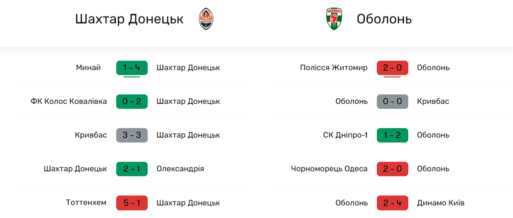 ОСТАННІ ОЧНІ МАТЧІ КОМАНД