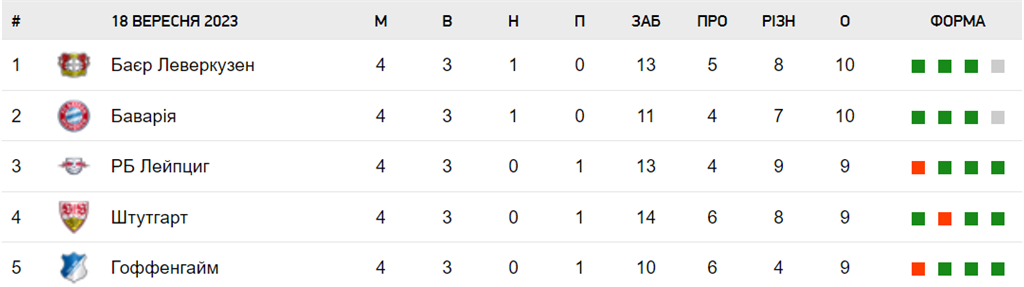 У рамках четвертого туру Бундесліги Баварія зіграла внічию з Баєром (2:2). Наразі ці команди з однаковою кількістю очок очолюють турнірну таблицю.