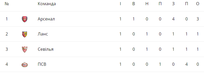 У рамках першого туру Ліги чемпіонів відбулось протистояння між Арсеналом і ПСВ. Матч завершився впевненою перемогою лондонців — 4:0.