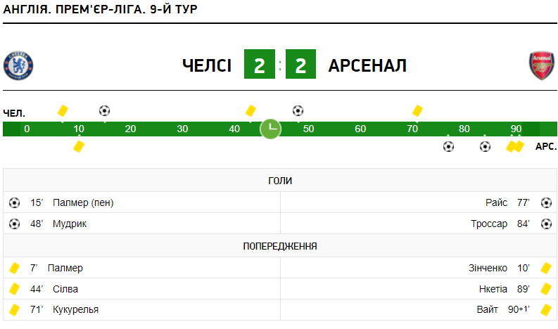 У рамках матчу дев’ятого туру англійської Прем’єр-ліги Челсі на власному полі зіграв унічию проти Арсенала (2:2).