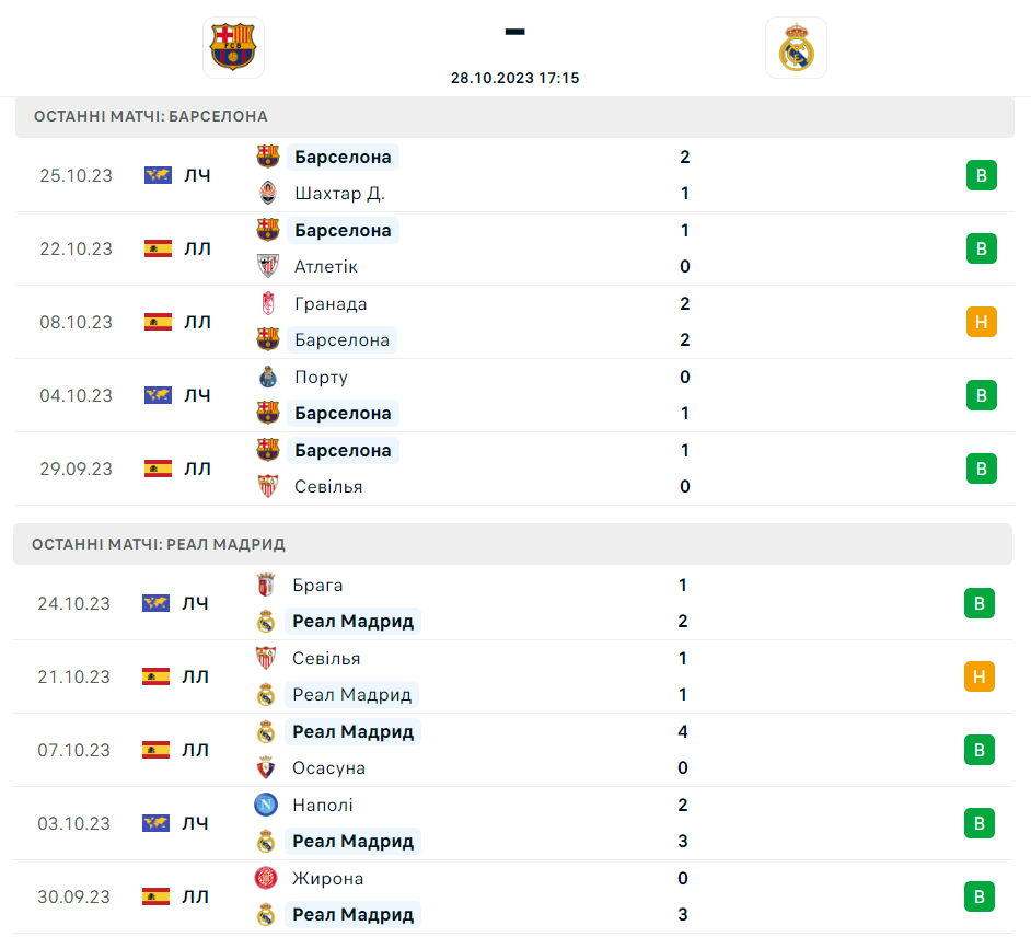 Матч Барселона — Реал Мадрид відбудеться у суботу, 28 жовтня. Початок — о 17:15 за київським часом. Слідкувати за ключовими подіями цієї зустрічі ви зможете за допомогою текстової онлайн-трансляції на Football.ua.