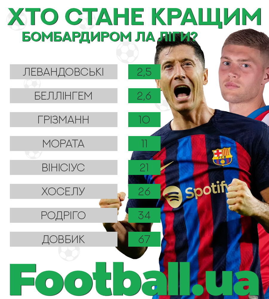 Найвищими вважаються шанси нападника Барселони Роберта Левандовські, в якого поки ще лише п'ять голів. На нього пропонується показник 2,5. Водночас на поточного лідера перегонів Джуда Беллінгема можна поставити з трохи більшим показником — 2,6.