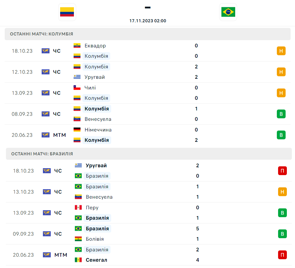 Матч Колумбія — Аргентина відбудеться у ніч на п'ятницю, 17 листопада. Початок — о 02:00 за київським часом.