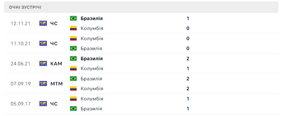 Так, на перемогу Бразилії пропонується коефіцієнт 2,25, тоді як потенційний успіх Колумбії оцінюється показником 3,65. Ймовірність нічийного результату представлена коефіцієнтом 3,20.