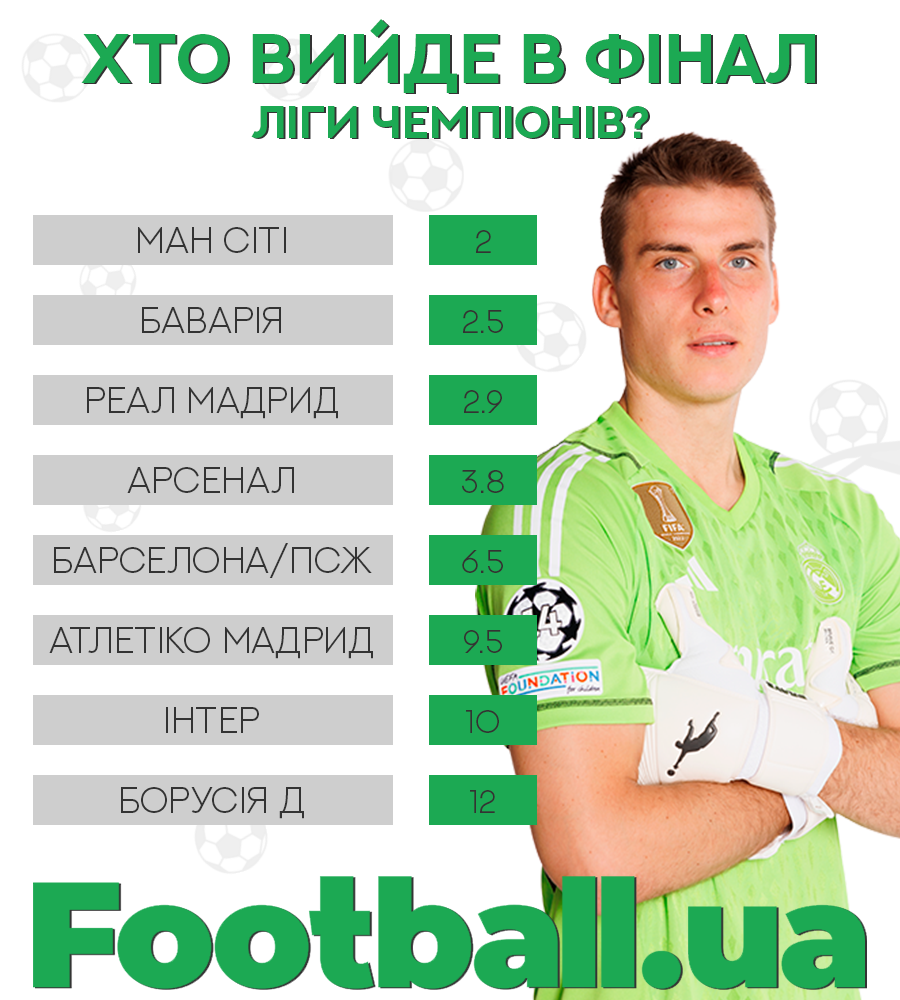 Цілком очікувано, що найвищі шанси на вихід у фінал у чинного переможця — Манчестер Сіті. Коефіцієнт на "містян" складає 2,0. Другий найменший показник у Баварії — 2,5. Команд Томаса Тухеля тепер має Гаррі Кейна та може далеко зайти.