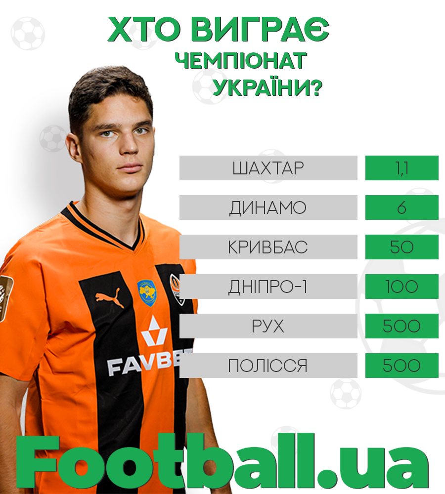 Букмекери також розглядають ймовірний успіх Кривбасу і пропонують на криворіжців показник 50. Команда Вернидуба має стільки ж балів, що і Динамо, але провела на дві гри більше. Також в списку присутній Дніпро-1 і коефіцієнт на його перемогу в УПЛ складає 100.