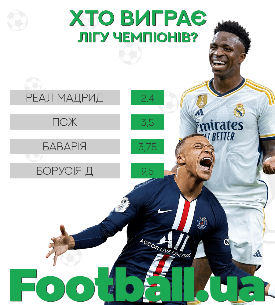 Втім, Баварія займає лише третє місце у рейтингу букмекерів, адже коефіцієнт на перемогу Парі Сен-Жермен складає 3.5. Власники парижан з перших днів свого перебування в клубі заявили, що перемога в Лізі чемпіонів є їх пріоритетом і всі ці роки команда мріє про довгоочікуваний трофей. З наступного сезону команду покине Кіліан Мбаппе і зараз в ПСЖ відмінна нагода виграти титул з одним з найсильніших гравців світу.
