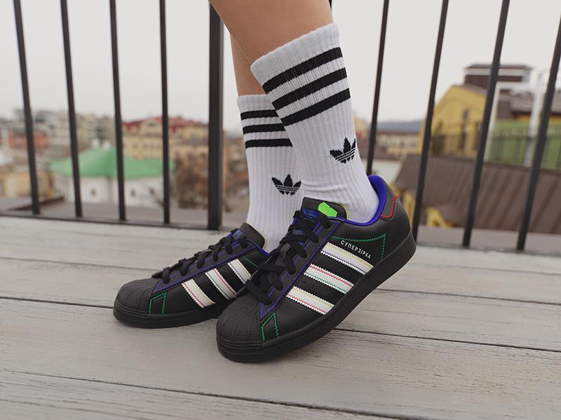 Минулого року в першій спільній колекції були представлені кросівки Superstar з українським написом "Суперзірка" у білому та м'ятному кольорах. Цього року до нової колекції увійшла оновлена "Суперзірка" у чорному кольорі з контрастними зовнішніми швами.
