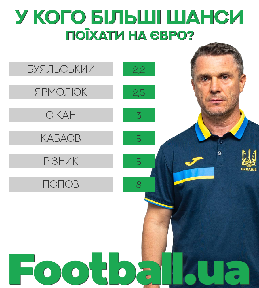 Букмекери вважають, що найвищі шанси на це в Віталія Буяльського — на його поїздку на Євро можна поставити з коефіцієнтом 2.2. Також експерти очікують, що в Німеччину може поїхати Єгор Ярмолюк. На це показник складає 2.5.