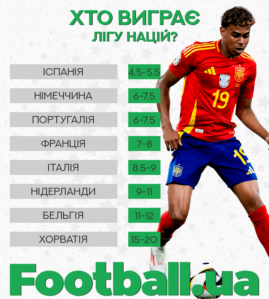 16 національних збірних змагаються за кубок переможця. Звісно, після феноменального виступу на Євро саме збірна Іспанії є головним фаворитом на перемогу і в Лізі Націй-2024/25.