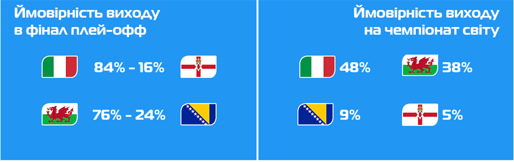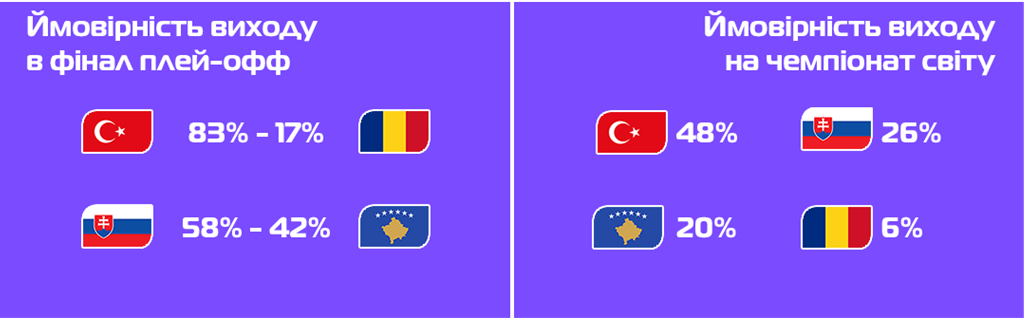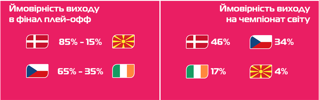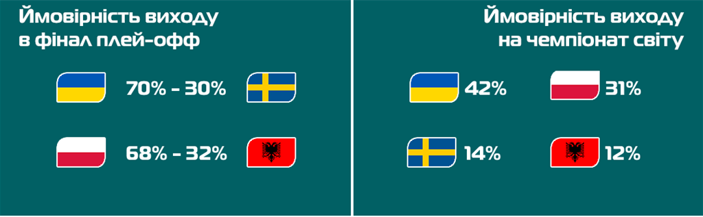 Цікаво, що портал Football Meets Data визначає Україну не тільки фаворитом протистояння зі Швецією, а й загалом найбільш ймовірним учасником мундіалю від цього шляху плей-офф.