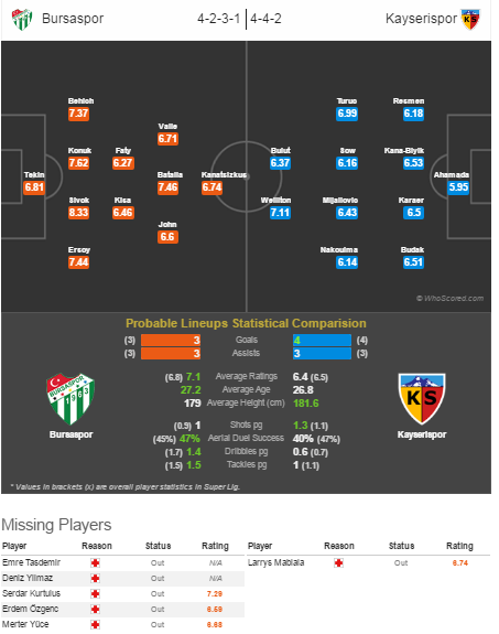 Несмотря на две победы Бурсаспора, за три матча Суперлиги команде удалось забить лишь трижды. Кайзериспор же отличился четырьмя мячами, но за спиной у подопечных Кутлу еще нет побед.