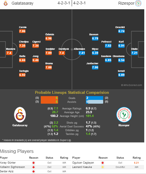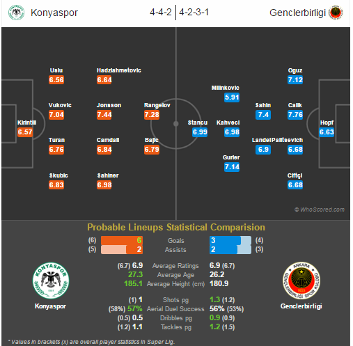 У хозяев восстановился Йылдыз, который должен составить пару в центре поля с Каяли. Должен появиться в старте и Гилас, который усилил игру команды в прошлом туре против Аданаспора (0:0).