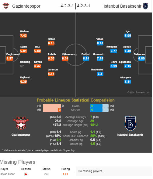 У хозяев по-прежнему много футболистов в лазарете: Эмре Ташдемир, Денис Йылмаз, Сердар Куртулуш, Эрдем Озенк и Мертер Юдже.