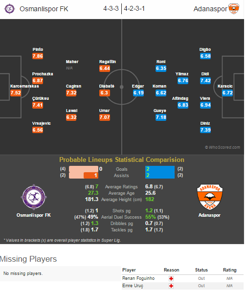 Османлыспор еще не проигрывал в текущем розыгрыше Суперлиги, добыв победу и две ничьи. Аданаспор же в свою очередь еще не побеждал — те же две ничьи и одно поражение.