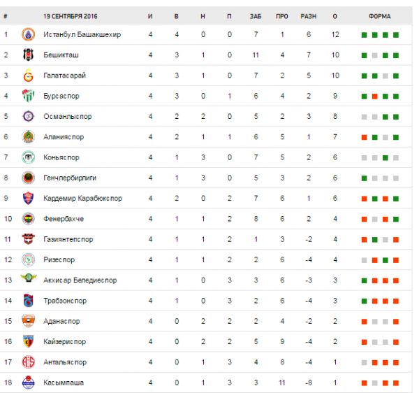 Турнирная таблица:
