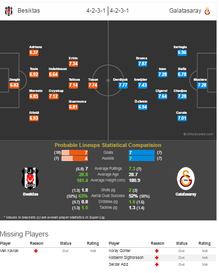 После матча с Желто-Красными Черных Орлов ожидает матч в Лиге чемпионов против Динамо. Тем не менее, поединок с киевлянами состоится аж через три дня, потому наставник команды Сенул Гюнеш вряд ли будет беречь футболистов в Стамбульском дерби. Бешикташу все еще не может помочь Кавлак.