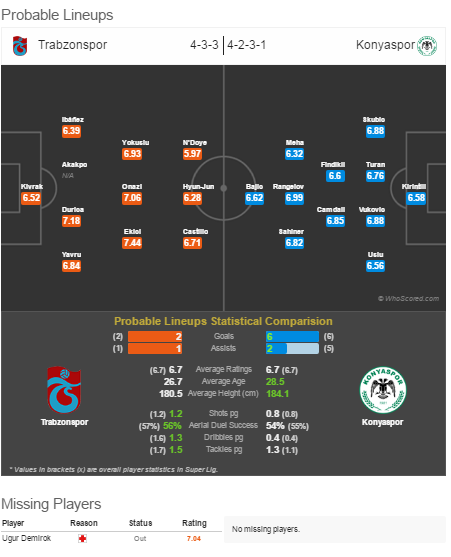 Защитник Трабзона Угур Демирок пропустит матч из-за травмы, а это значит, что Серж Акакпо (да, тот самый человек-привоз в Говерле несколькими сезонами ранее) имеет шансы выйти в стартовом составе. Центрбек играл в кубковом матче в среду против Серхат Ардахан (6:0).