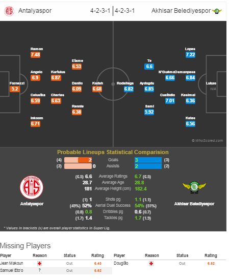 Впереди у гостей должен выйти Танасае, который забил победный гол в ворота Антальяспора в прошлом туре. Родич должен остаться на скамейке запасных.