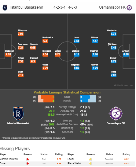 Лидер чемпионата Башакшехир принимает еврокубкового бойца Османлыспор. Обе команды объединяет то, что два коллектива еще не проигрывали в нынешнем чемпионате. Кроме того, встречаются две лучшие защиты Суперлиги (Истанбул пропустил один мяч, а Османлыспор — два).