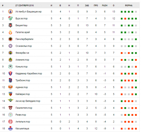 Турнирная таблица: